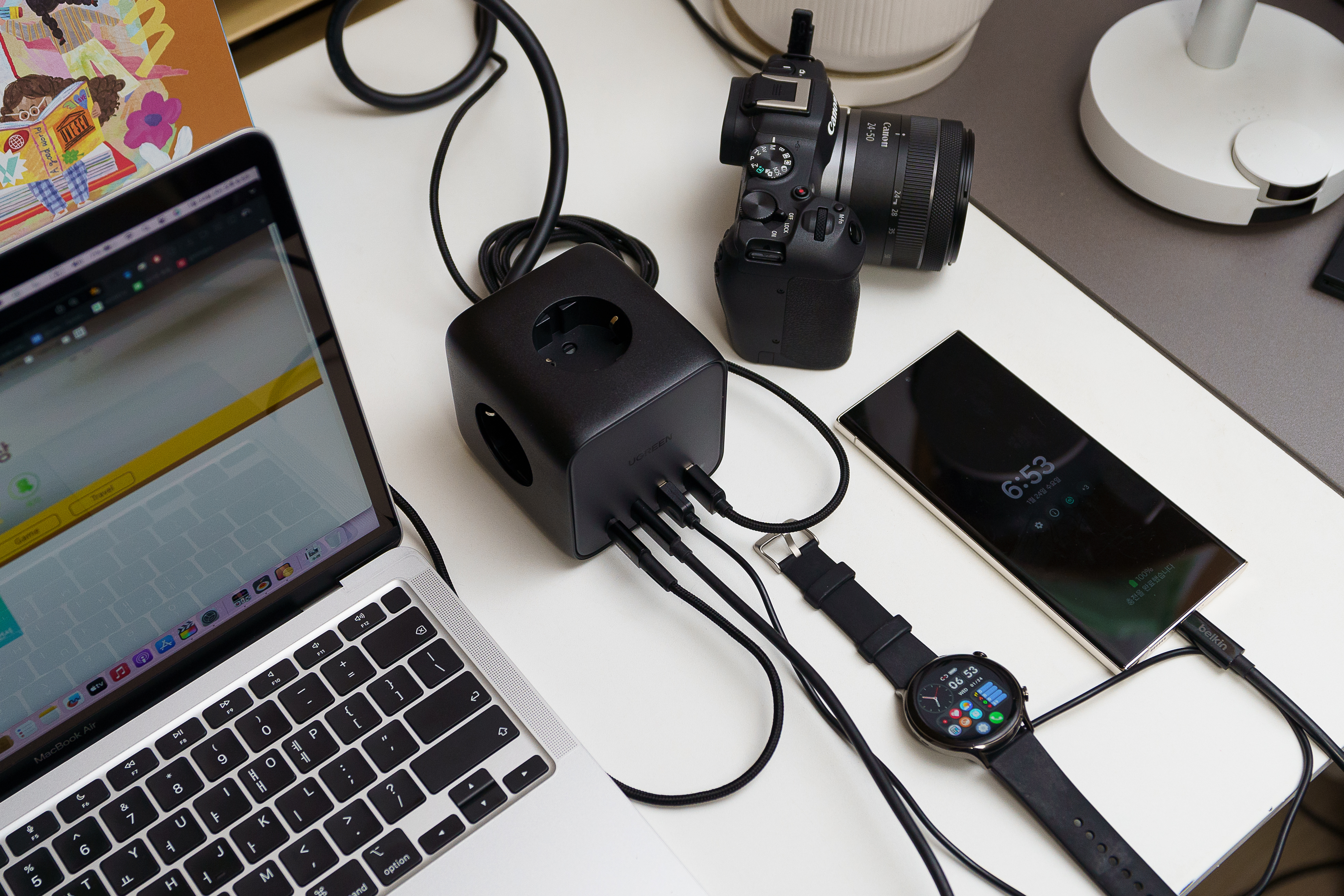 함께 충전해도 맥북 에어의 최대 충전 전력을 만족한다.