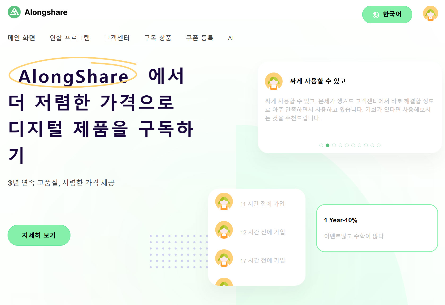 어롱쉐어를 통해 정가보다 최대 75% 저렴하게 구독할 수 있습니다.